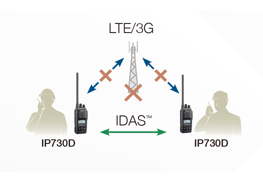 In LTE mode, the radios deliver secure push-to-talk communication across wide areas using Icom’s LTE-CONNECT network. In remote regions, IDAS™ digital or analog modes ensure local communication continues without interruption. This dual setup gives teams the best of both networks — LTE for reach, and VHF/UHF for reliability.