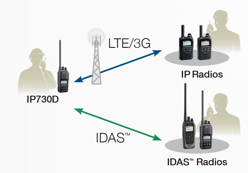 Using the VE-PG4 RoIP Gateway, the IP730D/IP740D can link LTE, satellite PTT, WLAN, and IDAS™ networks — creating a unified communication system across multiple technologies.